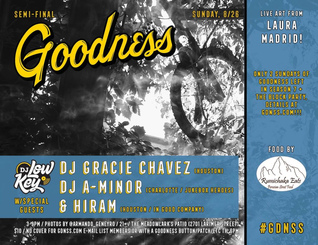 The Red Bull Music x Goodness w/DJ Low Key & Friends Block Party is right around the corner and that makes it a perfect time to get familiar with Goodness Greatness, the all-star band combining a few modern day hip hop legends, some of Denver’s finest players & a few surprises that we’ve put together for one show only. Check the lineup, grab $10 pre-sale tickets here (they go up to $15 the day of) & definitely don’t miss the show on Saturday, 9/1 at 27th & Larimer St: