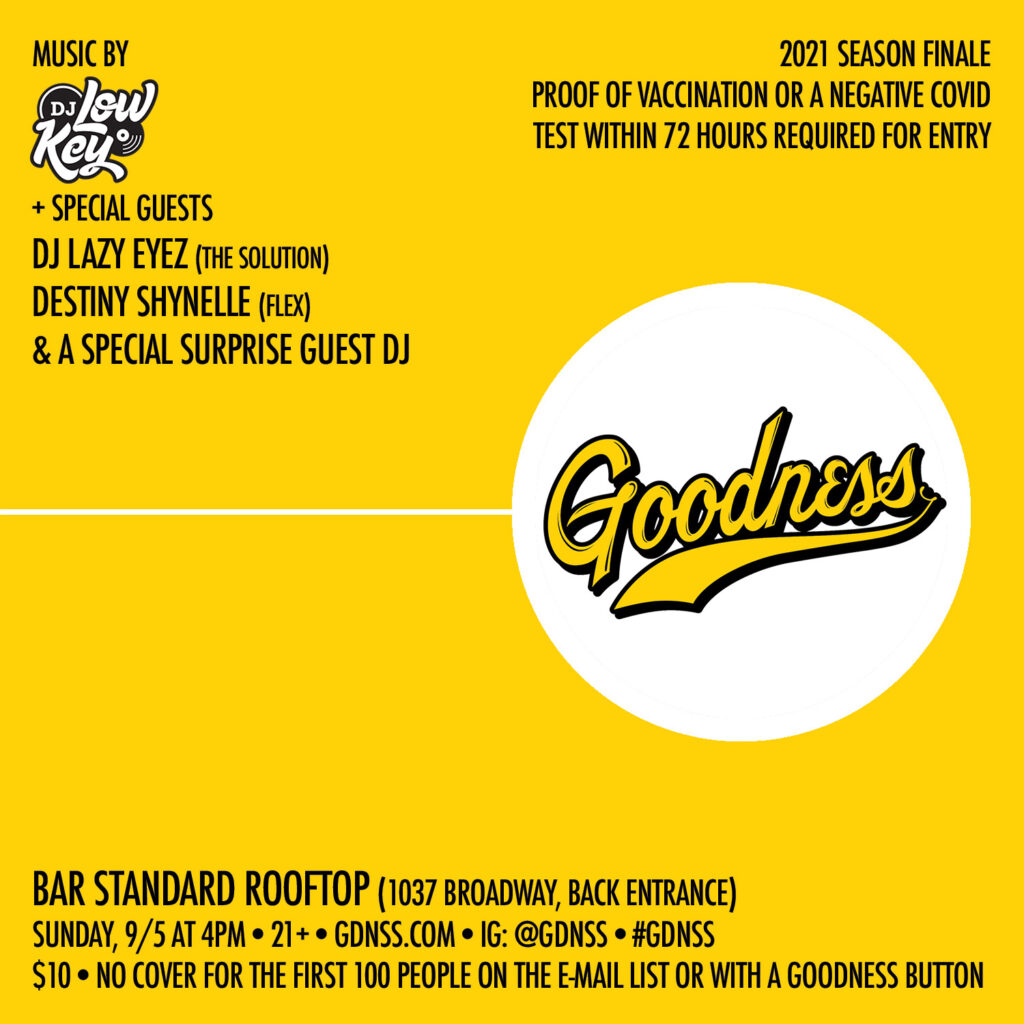 No cover for the first 100 GDNSS.com e-mail list subscribers or with a Goodness button.